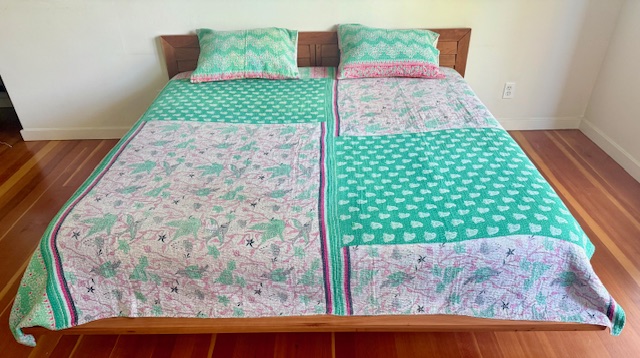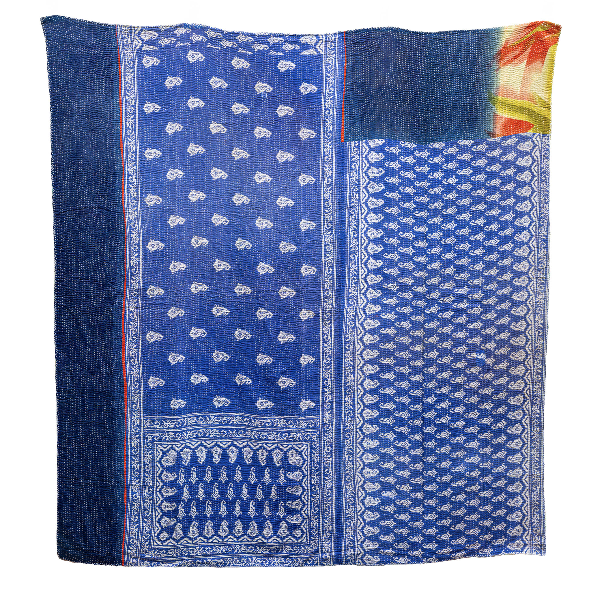 Rainbow Nilgiri Hills: Deep mountain blue patterned with crisp white, paired with a rainbow-hued pillow accent. Fresh and uplifting like clear skies over rolling hills.