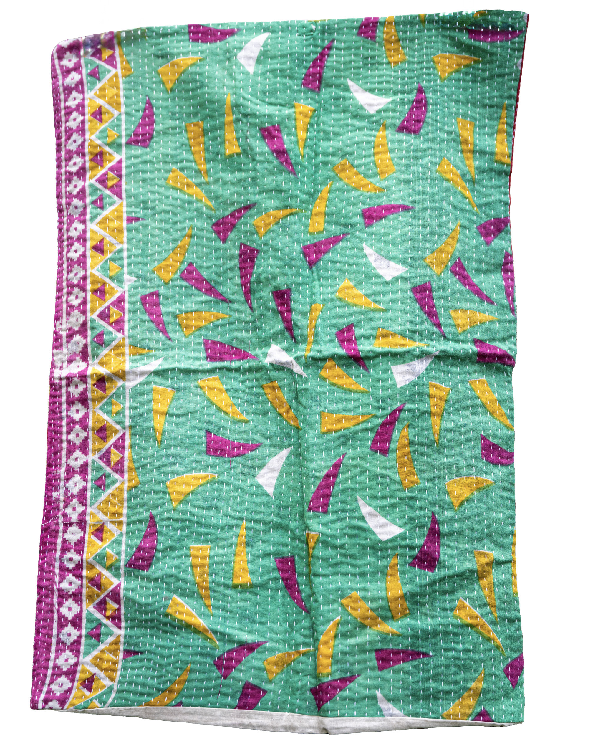 Indian Paper Kites: Emerald green fields with curling ivory vines meet violet and gold geometric bursts. Fresh and vibrant like paper kites against a summer sky.
