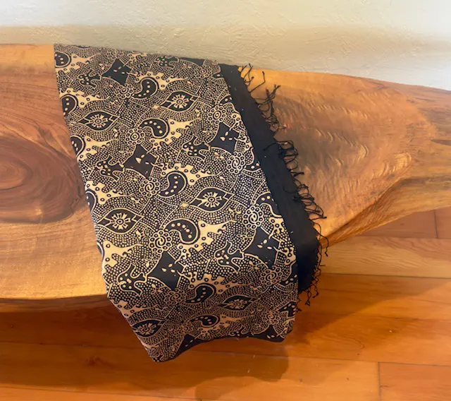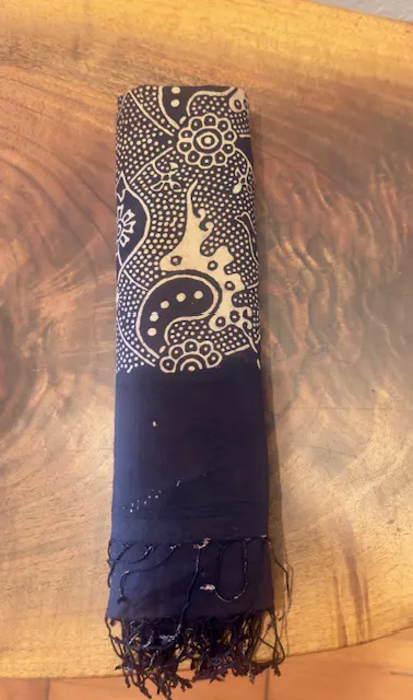 Every mark and irregularity is a signature of the traditional creative process of the resist dyeing and printing made with artist’s intention and care.