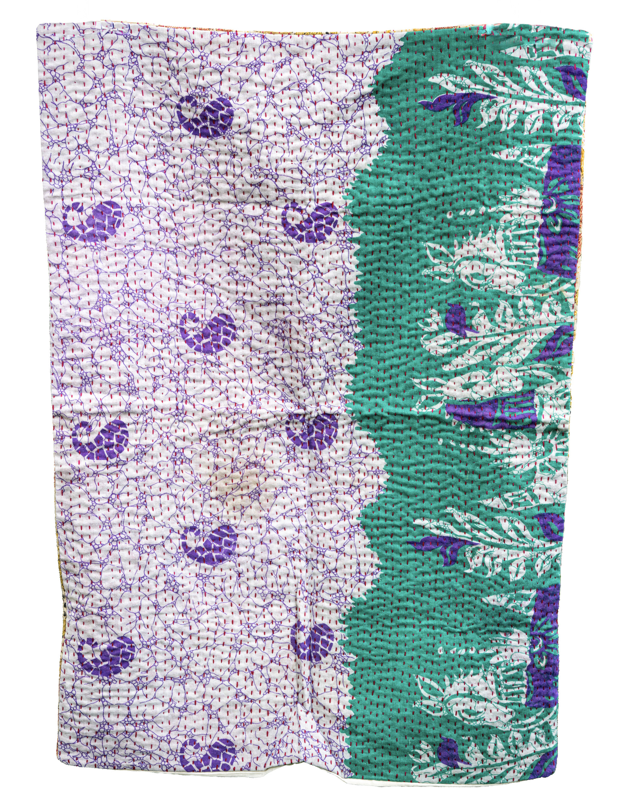 Purple Bankura Horses: Soft lilac ground with emerald and violet borders, accented by horse and vine motifs. Cool and refreshing like shaded gardens in early spring.
